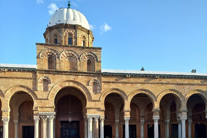 After a traditional lunch, embark on a guided tour of Tunis, the vibrant capital of Tunisia. Discover the Medina's hidden treasures—opulent palaces, historic religious schools, and beautiful mosques—in one of the most captivating medinas in the world, a UNESCO World Heritage site.